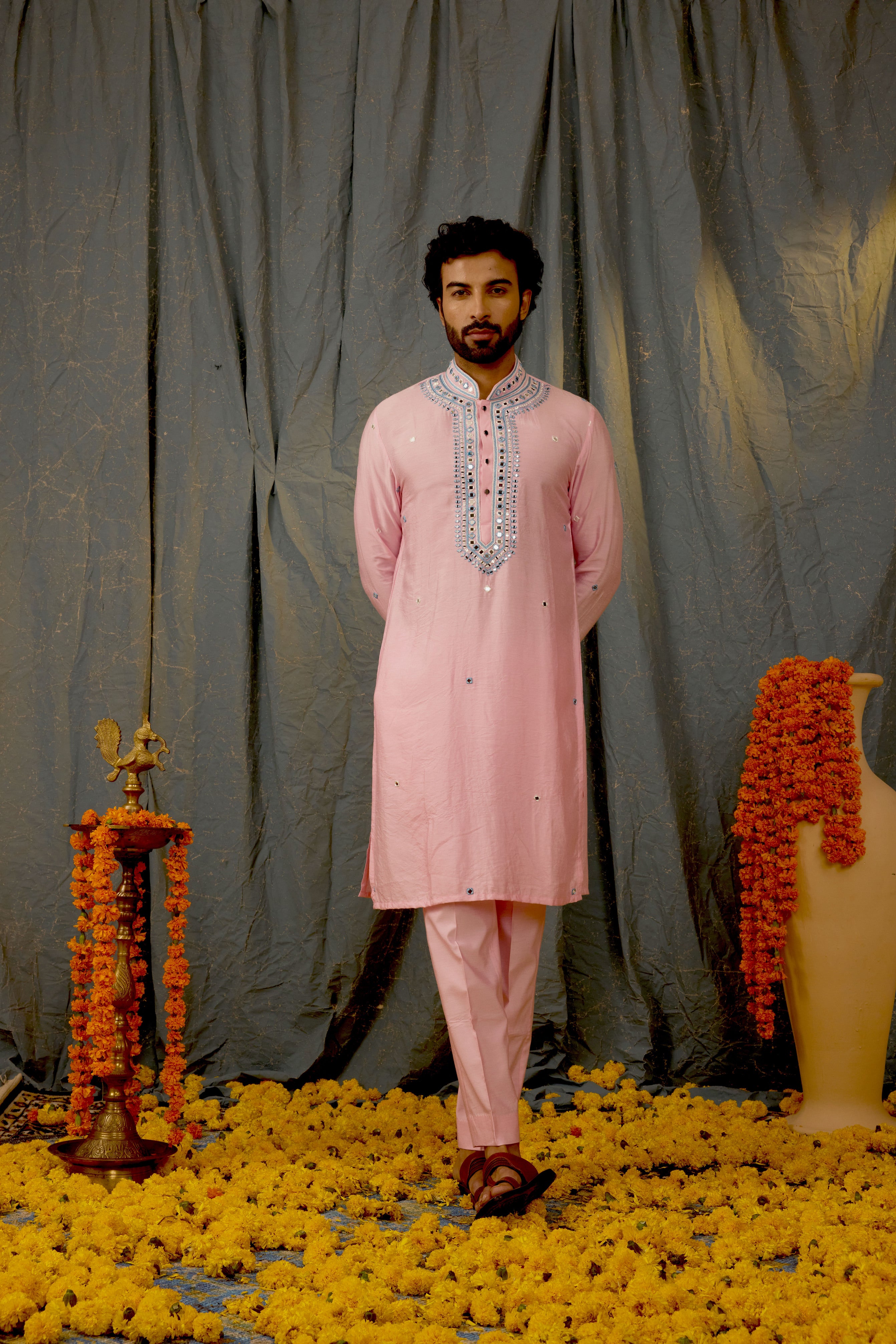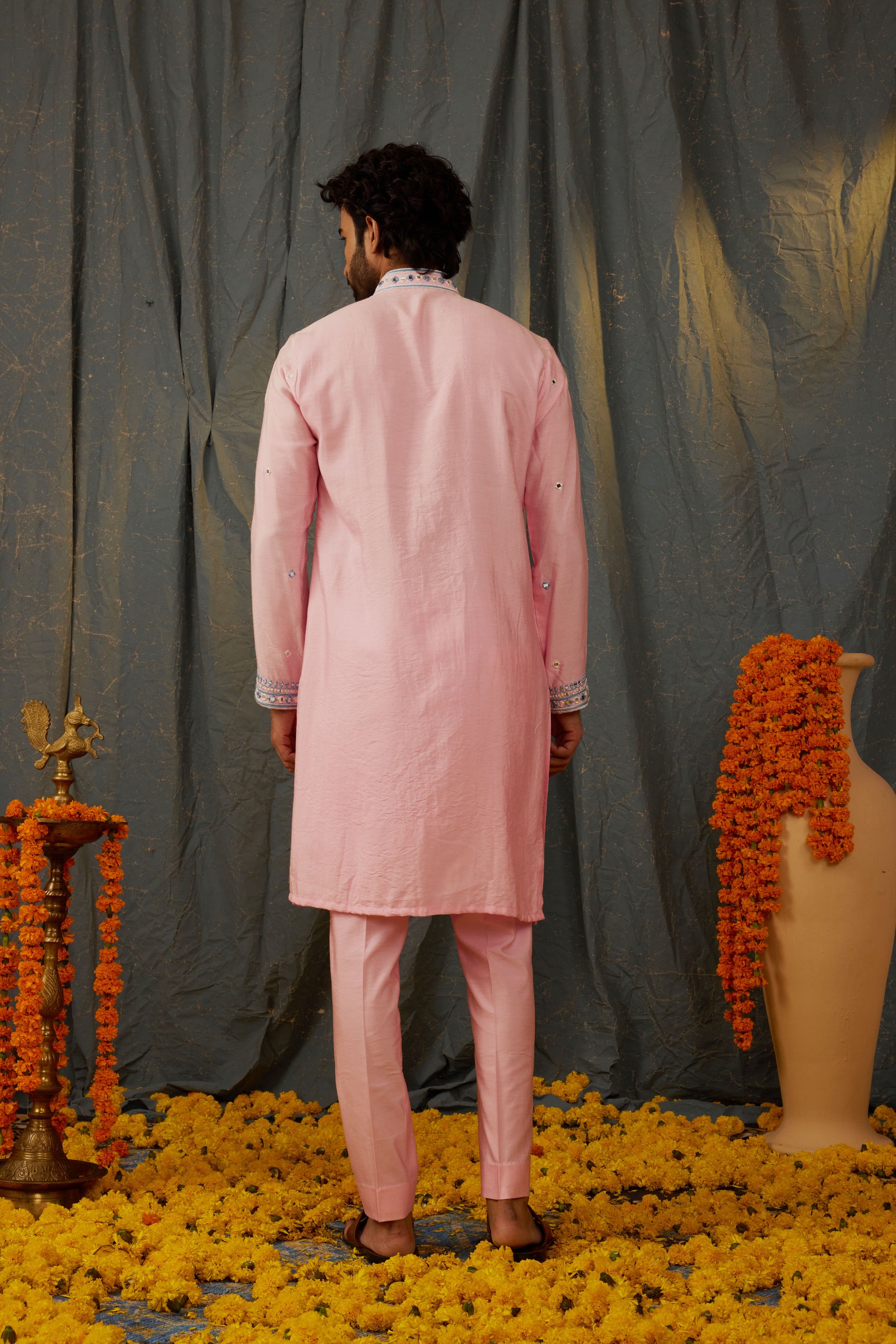 The Dusty Pink kurta Set is expertly crafted from silk and features delicate embroidery. This luxurious kurta set exudes elegance and sophistication, making it the perfect choice for any formal occasion. With its high-quality materials and intricate detailing, this set is sure to make you stand out from the crowd.