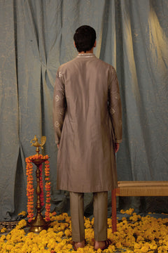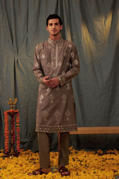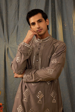 The Grey Eclipse kurta Set is expertly crafted from silk and features delicate embroidery. This luxurious kurta set exudes elegance and sophistication, making it the perfect choice for any formal occasion. With its high-quality materials and intricate detailing, this set is sure to make you stand out from the crowd.