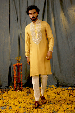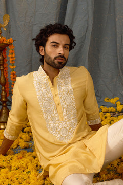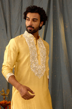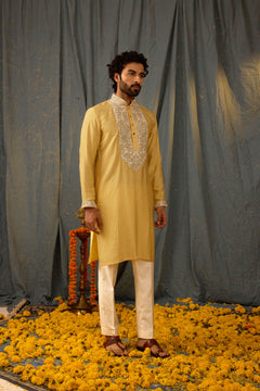 The Lime Yellow kurta Set is expertly crafted from silk and features delicate embroidery. This luxurious kurta set exudes elegance and sophistication, making it the perfect choice for any formal occasion. With its high-quality materials and intricate detailing, this set is sure to make you stand out from the crowd.