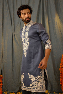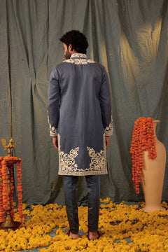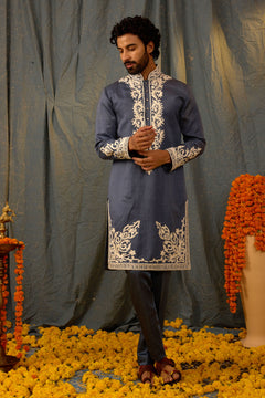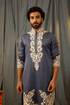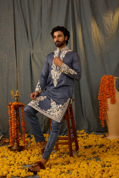 The Denim Blue kurta Set is expertly crafted from linen silk and features delicate embroidery. This luxurious kurta set exudes elegance and sophistication, making it the perfect choice for any formal occasion. With its high-quality materials and intricate detailing, this set is sure to make you stand out from the crowd.